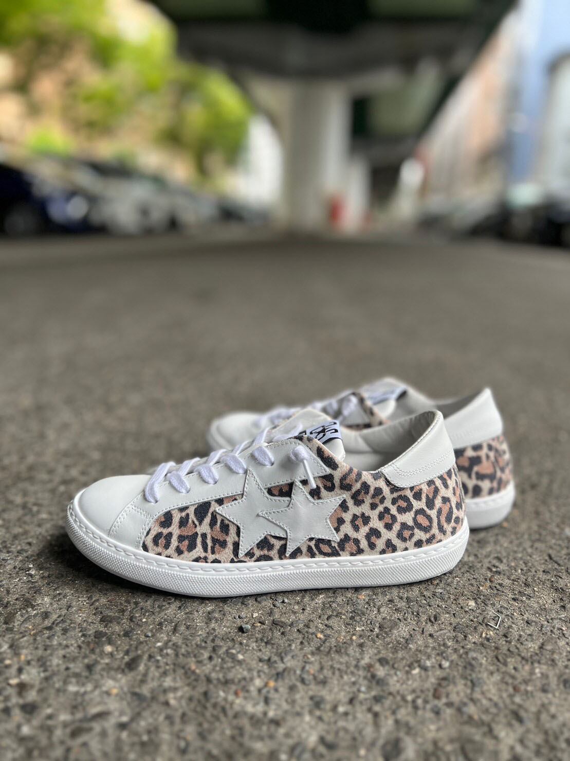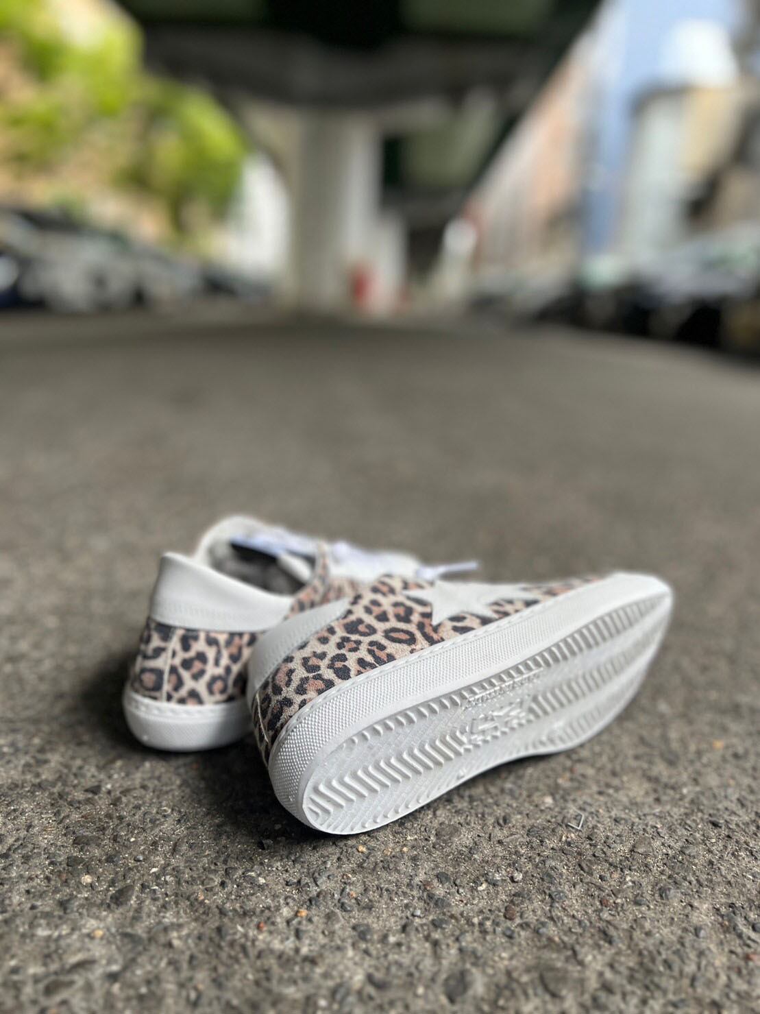 ヒョウ柄スエードに白のアイコンの星がポイント。